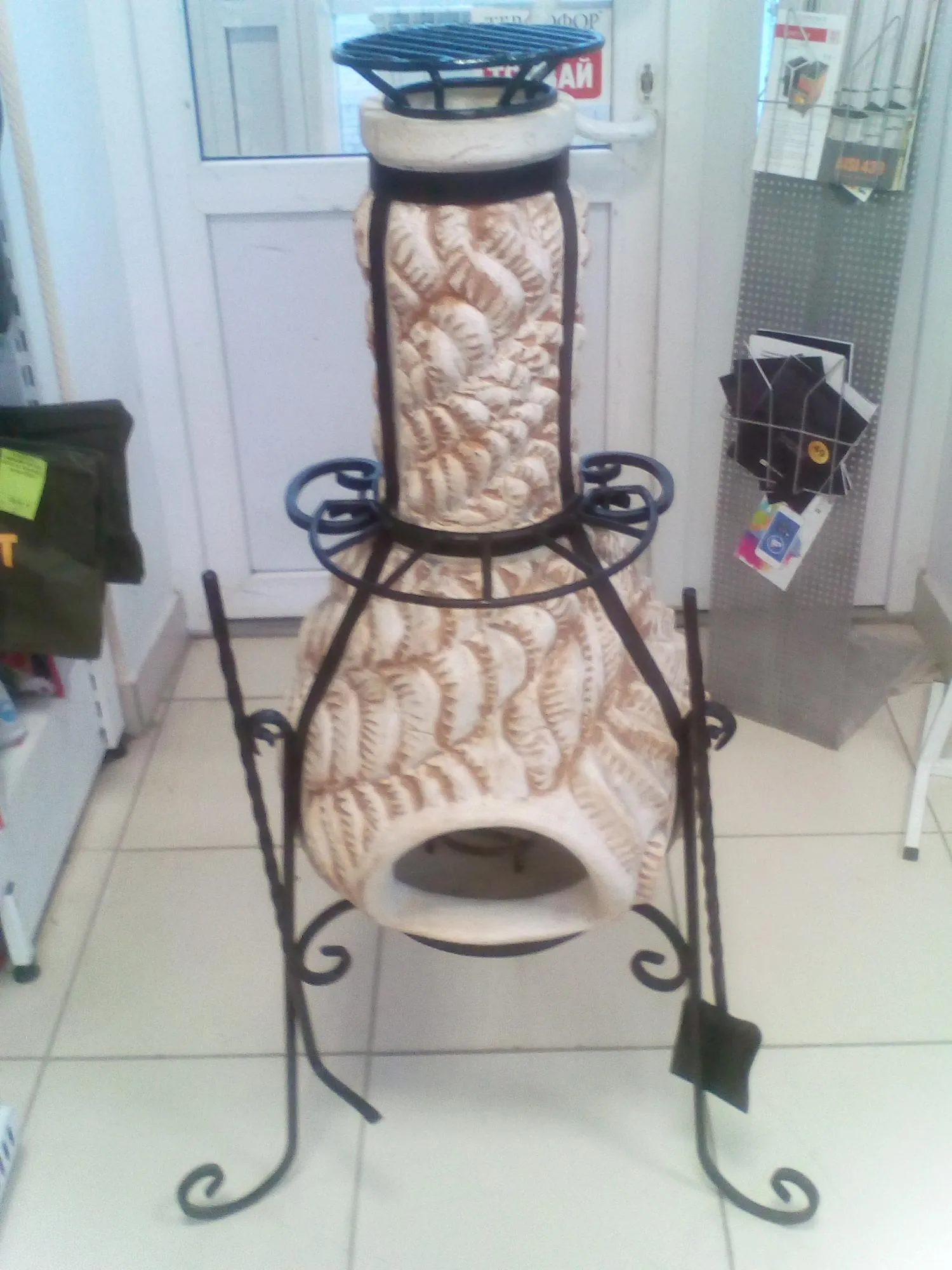 В комплекте: боковая полка-подставка стальная – 1 шт.; подставка-рассекатель стальная на дымоход – 1 шт.; колосник стальной – 1 шт.; комплект для чистки топки (совок – 1 шт., кочерга – 1 шт.).